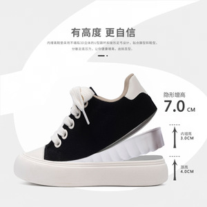 ユニバーサル 7 センチメートル目に見えない高さの靴 ZHQ68226N 夏のクラシックな黒と白の紳士靴トレンディな厚底キャンバスシューズ