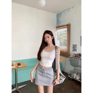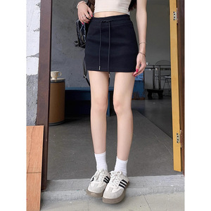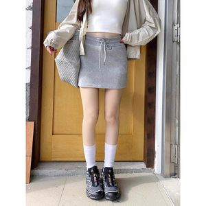 グレーカジュアルスカートスポーツ巾着スカート2025春夏多用途痩身ショートスカートヒップカバースカート女性用