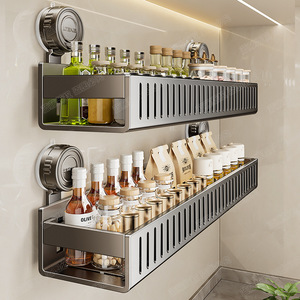 ガンアッシュキッチン収納ラック吸盤家庭用パンチフリー壁掛け油塩ソース酢調味料ボトル収納ラック