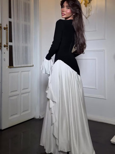 ヨーロッパとアメリカのアマゾンクロスボーダー2025新しい夏のスタイルのエレガントなデザインの女性用長袖ロングスカート快適なドレス