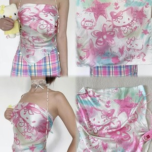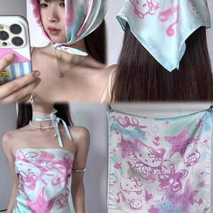ホットガールキティ猫手描き落書きチューブトップ女性夏 y2k ドーパミンかわいい胸ターバンシルクスカーフストリートトレンド