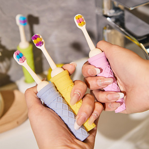 1万本の毛の子供用小頭柔らか毛歯ブラシ、かわいい赤ちゃん3-6-12歳の歯が生えるアイスクリーム在庫あり