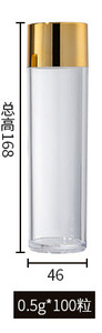50g 増粘 - 0.5*45 カプセル、透明ボトル + ブライトゴールド蓋 (印刷なし)、プラスチック