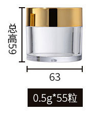 50g エクストラハイト - 0.5*55 カプセル、透明ボトル + ブライトゴールド蓋 (印刷なし)、プラスチック