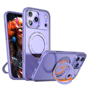 iPhone17promax用スマホケース、スタンド付き、マグネット式、360度回転、16pro用、マットな肌触り、耐衝撃、15対応