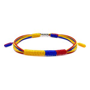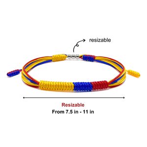 国旗カラーブレスレット カラフルなコードシルバービーズ編み込み調節可能なブレスレット コロンビア国旗編み込みブレスレット