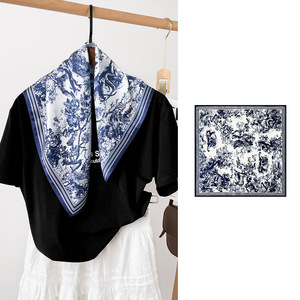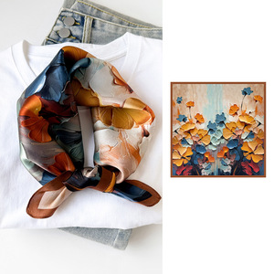 プレーンクレープサテンシルクスカーフ、シルクハイエンドエスニックスタイルチェリースクエアスカーフ、夏のレトロな小さなシルクスカーフ、女性用スクエアスカーフ
