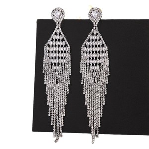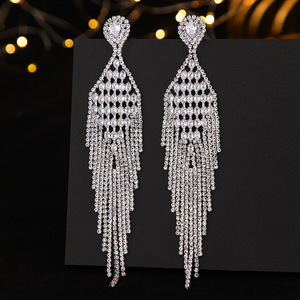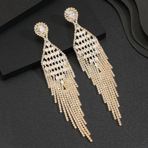 タッセルイヤリング、ジルコンロングイヤリング、女性用ラインストーンハイエンドダイヤモンドイヤリング、メーカー承認の幾何学模様