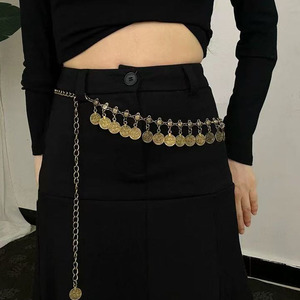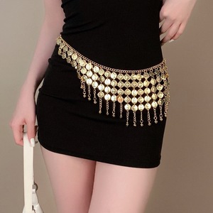 ゴールド多層ラウンドタグタッセルウエストチェーン
