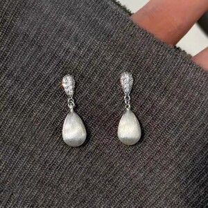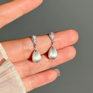 中世のコールドスタイルシルバーつや消しウォータードロップペンダントイヤリング、軽くて豪華なデザインの女性用ジルコンイヤリング卸売