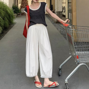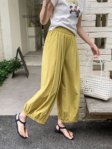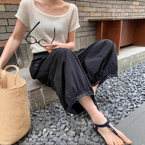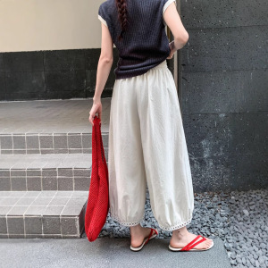 かぎ針編みブルマ女性の 2025 夏の新韓国スタイルルーズカジュアルワイドレッグパンツ中空カジュアルパンツバルーンパンツ
