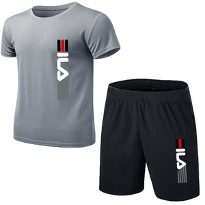 貿易夏メンズメッシュショーツスーツプリントファッションTシャツツーピースカジュアル5点パンツスーツ男性用