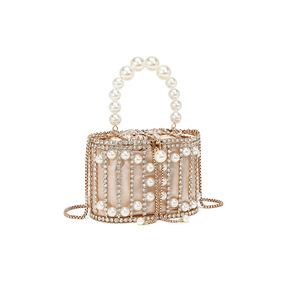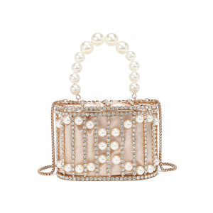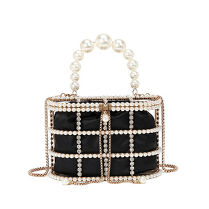 広州ソースファクトリーダイヤモンドハンドバッグレディースバッグ 2025 新しいパールファッションパーティーショルダークロスボディ鳥かごバッグ