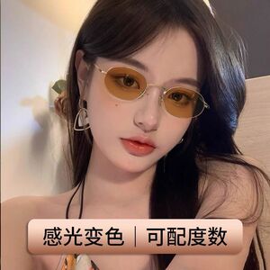 变色复古金丝边近视眼镜可配度数一镜三用墨镜素颜神器显白近视镜
