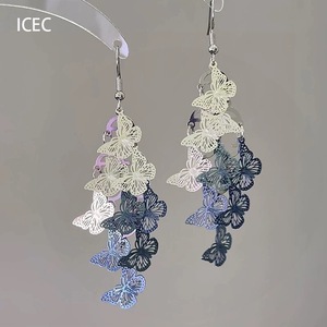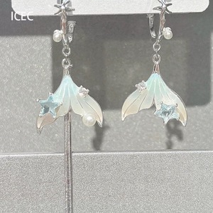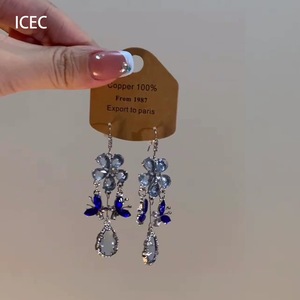 シルバーニードルフラワークリスタルタッセルイヤリング、ライトラグジュアリー、ハイエンド、フレッシュでスイートなイヤリング、ファッショナブルで多用途、女性用のシンプルなイヤリング