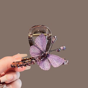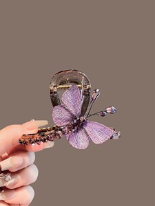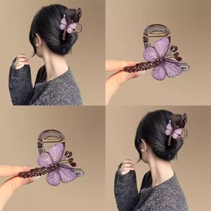 堕落した蝶の気質レトロスタイル刺繍蝶クリップミディアムサイズ後頭部半結びヘアサメクリップ女性のヘアアクセサリー
