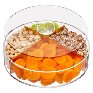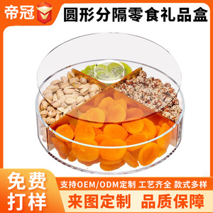 ラウンドアクリルキャンディボックス蓋付きコンパートメント収納ナッツスナックツバメの巣包装アクリルギフトボックスカスタマイズ