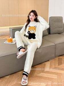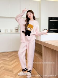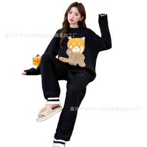 女の子ハーフベルベットパジャマ新しいかわいいホーム服セット女性の秋と冬暖かい長袖ズボンセット卸売
