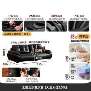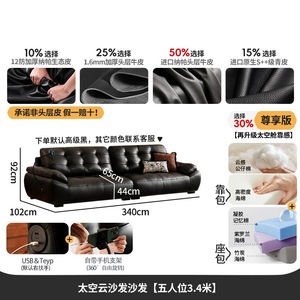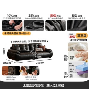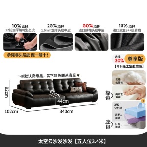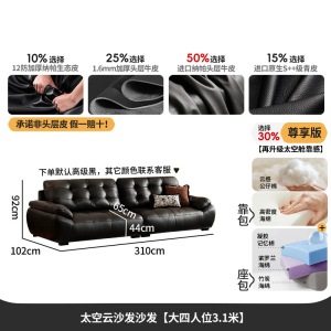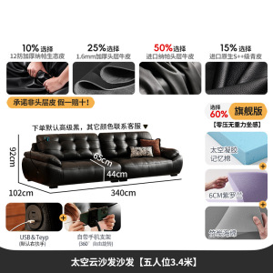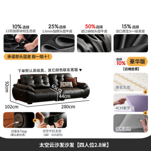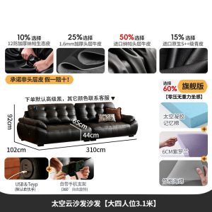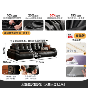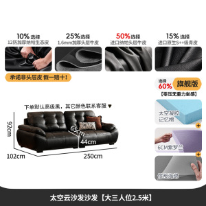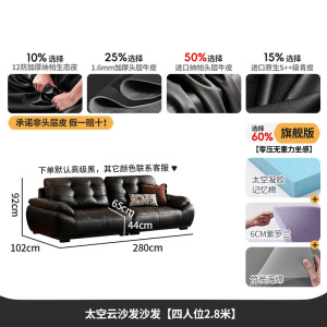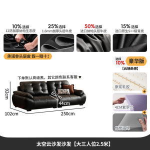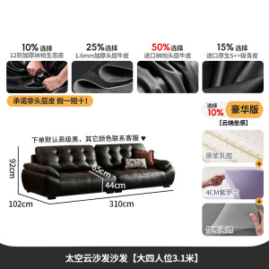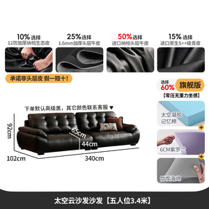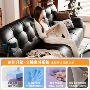 Tongyu スペシャルミニマリスト多機能リビングルーム第一層牛革クラウドレザーアートソファブラックレトロレザーソファ