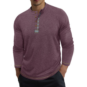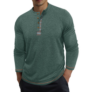 クロスボーダーアメリカンメンズラウンドネック長袖タフガイヘンリーティーシャツ外国貿易秋冬4つボタンメンズボトムスヘンリーズ