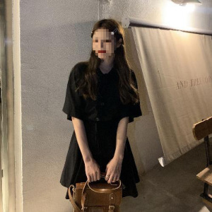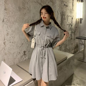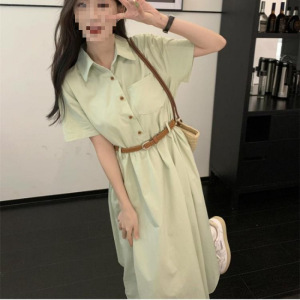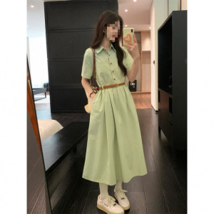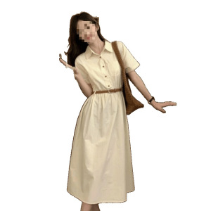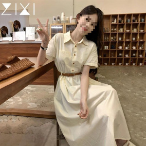 ポロカラー半袖ドレス女性のための 2025 夏の新しい A ラインウエスト痩身フレンチミドル丈スカート
