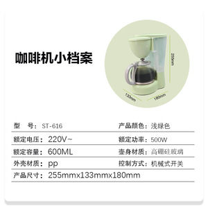 小型ドリップコーヒーマシンアメリカンコーヒーポット家庭用半自動挽きコーヒーメーカー高ホウケイ酸ガラスポット