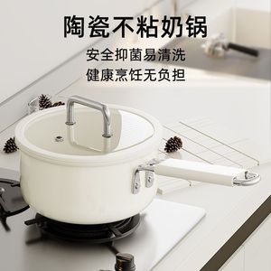 厂家批发陶瓷釉奶锅无氟不粘锅宝宝辅食锅家用小奶锅一人食泡面锅