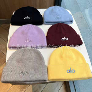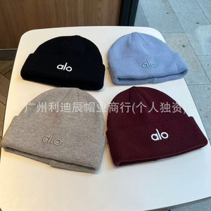 新しいニット帽〜alo秋冬ニット帽多用途暖かい厚みのある高弾性帽子スポーツ防風刺繍防寒帽子