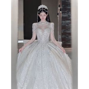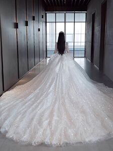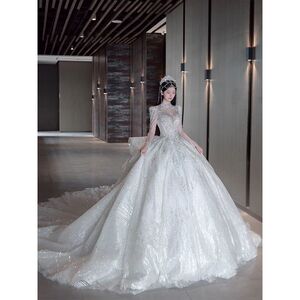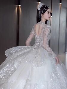 フレンチライトウェディングドレスブライダル2025新作重工業長袖ハイエンド高級レトロメインガーゼハイエンドテクスチャロングトレーン