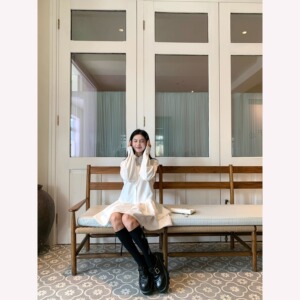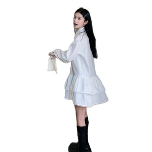 チーズフラワーハウスガールスカートレディースレースニッチAラインスカート春長袖白シャツドレス
