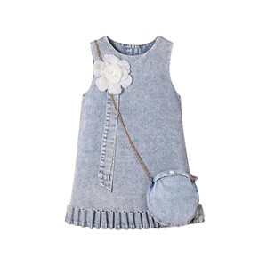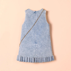 国境を越えた貿易夏韓国風女の子ノースリーブ立体フラワーデニムドレスバッグ付き子供用2点セット