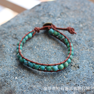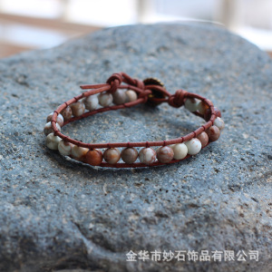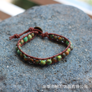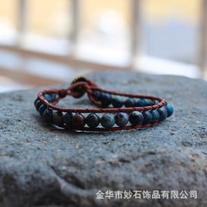 クロスボーダービーズ天然エンペラーストーンフェニックスパイン編み込み牛革ロープ巻きビーズブレスレットボヘミアンスタイル