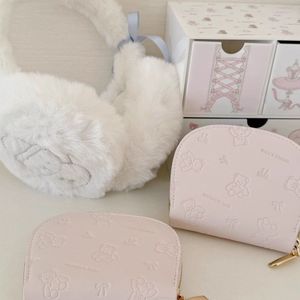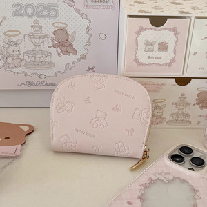 新しいinsガールシェルカードホルダーベアエンボス財布コンパクト収納かわいいマルチカードスロット大容量カードホルダー