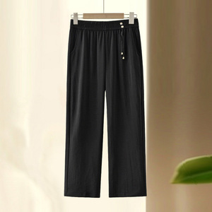 中高年女性のパンツ 2025 夏の新しいスタイルママの万能ストレートパンツ弾性ウエスト大きいサイズカジュアル無地ワイドレッグパンツ