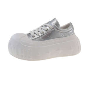 小柄な女性のための身長を伸ばす万能カジュアルビッグヘッドパンシューズ2025春夏新作人気プラットフォーム厚底白靴