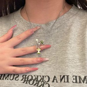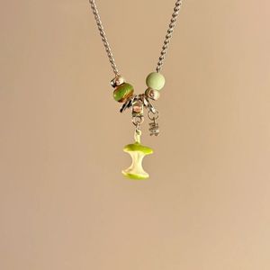 夏の韓国の甘くてクールなスタイルのグリーンアップルジェリービーンズネックレス 2025 新しい女性ニッチ多用途フルーツランニングリング鎖骨チェーン