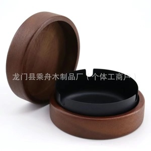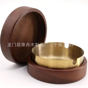クルミ色の無垢材蓋付き灰皿、飛散防止木製無垢材ステンレス製、家庭用リビングルームオフィス用