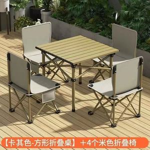 新しくアップグレードされたカーキ色 [厚みのあるパネルブラケット] - 正方形テーブル 53 脚 + 特大 34% off スタックチェア 4 脚 [収納バッグ]