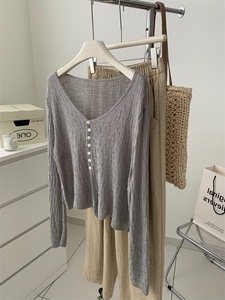テンセルリネンVネックニットカーディガンレディース優しいレトロ万能ドレープスリム長袖空調シャツ初秋ジャケット