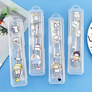 新しい漫画ポータブル食器 3 点セットステンレス鋼フォークスプーン箸学生かわいい食事食器セット