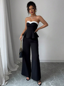 クロスボーダーアマゾンレディース2025新春夏ホリデースタイルヨーロッパとアメリカンスタイルのスプライシングオフショルダーベストワイドレッグパンツセット