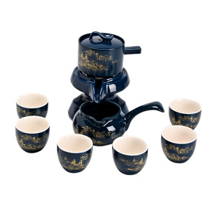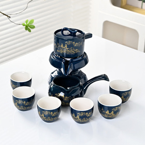 怠惰な自動カンフー茶セットティーポットティーメーカー回転石挽きギフトボックスホームオフィスシンプルな中国風