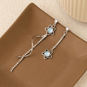 銀針スーパーフェアリーブルースタースタッドピアス、ロングタッセルダイヤモンドピアス、高級感、シンプルで絶妙なピアス