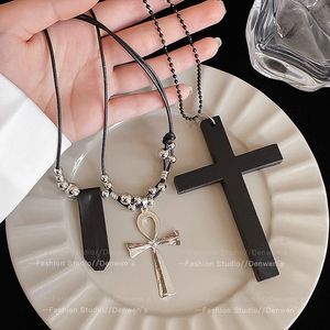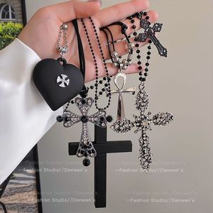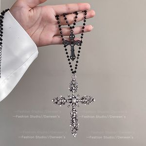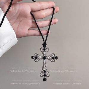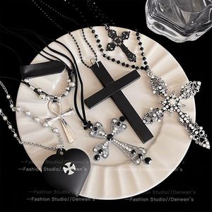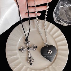 レトロダークスタイルクロスネックレスサブカルチャーゴシックスタイルロングダイヤモンドセーターチェーンニッチスイートクール鎖骨チェーン
