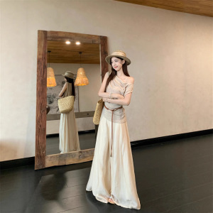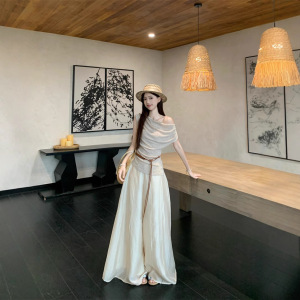 2025年夏の新作デザインのリアルショット、ウエスト痩身トップス、万能ドレープカジュアルパンツ2点セット83742