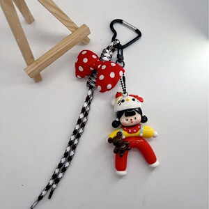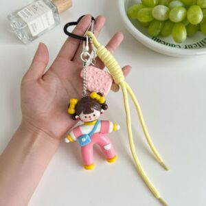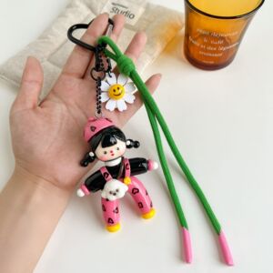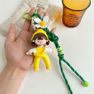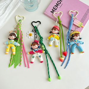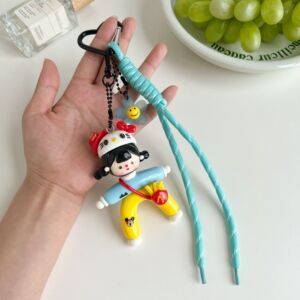 新作のスプリットポーズの女の子フィギュア、表情豊かな粘土製ハンドメイドバッグチャーム、キーホルダー、キュートなギフト、多用途なアクセサリー