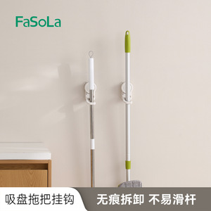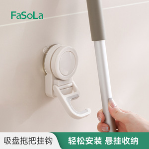 FaSoLa モップクリップ 浴室パンチフリーメトローブフック固定ラック 強力吸盤モップフック