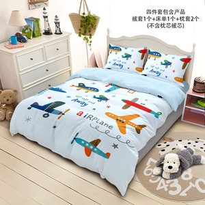 寝具 3D プリント起毛 4 点セット流通漫画子供っぽいキルトカバー学生寮寝室ベッドシーツとボックスシーツ