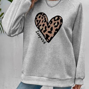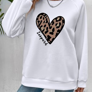 Amazonクロスボーダー新作ヒョウ柄ハートプリントスウェットシャツ、カジュアル長袖ラウンドネックスウェットシャツ、婦人服