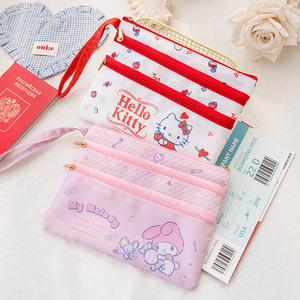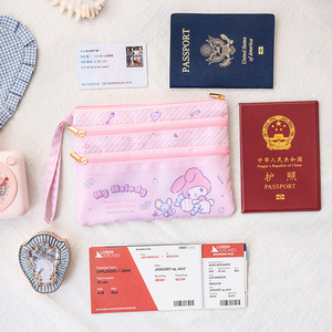 サンリオ純正ドキュメントバッグ ハローキティパスポートバッグ 収納バッグ 三層コンパートメント かわいい小銭入れ レシートバッグ かわいい